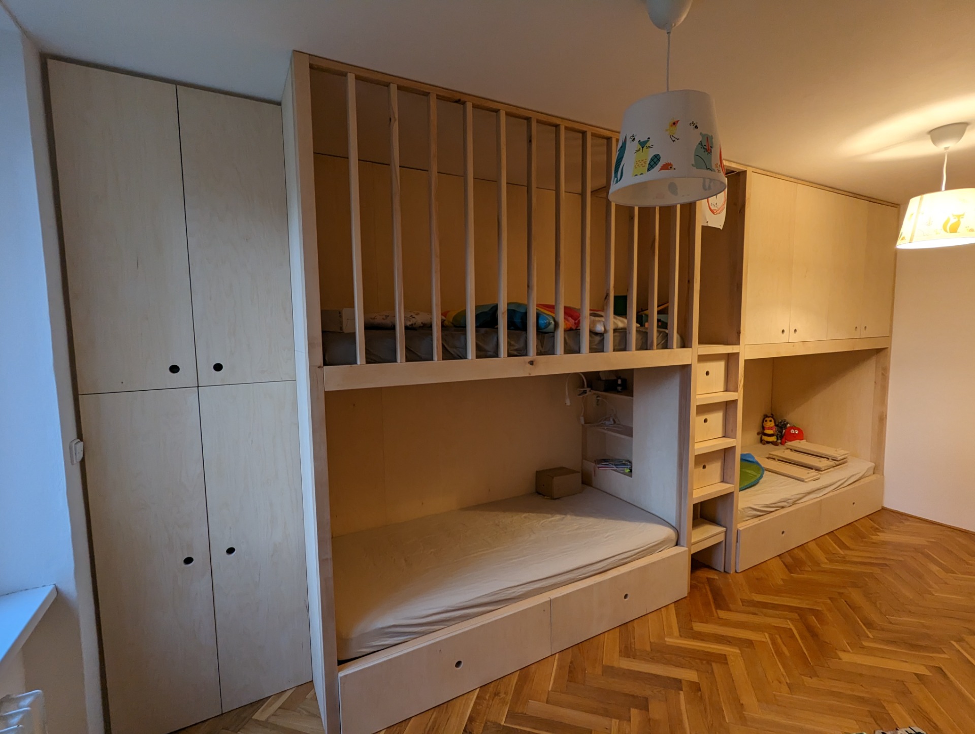 Stejní zákazníci, kteří mě oslovili na výrobu knihovny z březové překližky mě oslovili i na výrobu dětského patra. I na tento projekt měli vytvořený návrh od architektonické kanceláře Schwerpnukt.