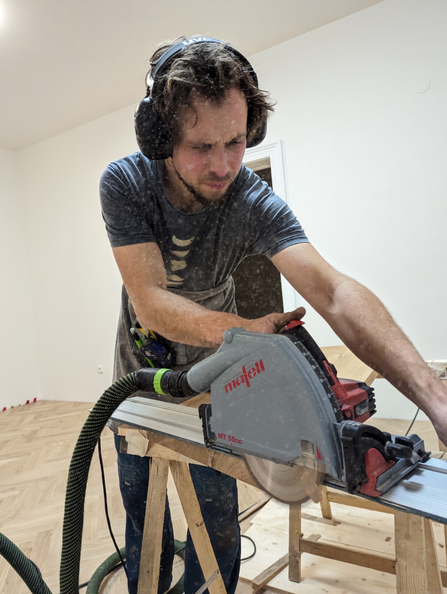 Pracuji v truhlářské dílně mezi lesy u jizerských hor. V dílně pracuji sám, nábytek precizně promýšlím a připravuji. Ale protože velkou částí mé práce jsou montáže nábytku na míru u vás doma, pomáhá mi s nimi má dlouholetá kamarádka a sousedka Evička. Jsme sehraní a rádi cestujeme po celé republice.