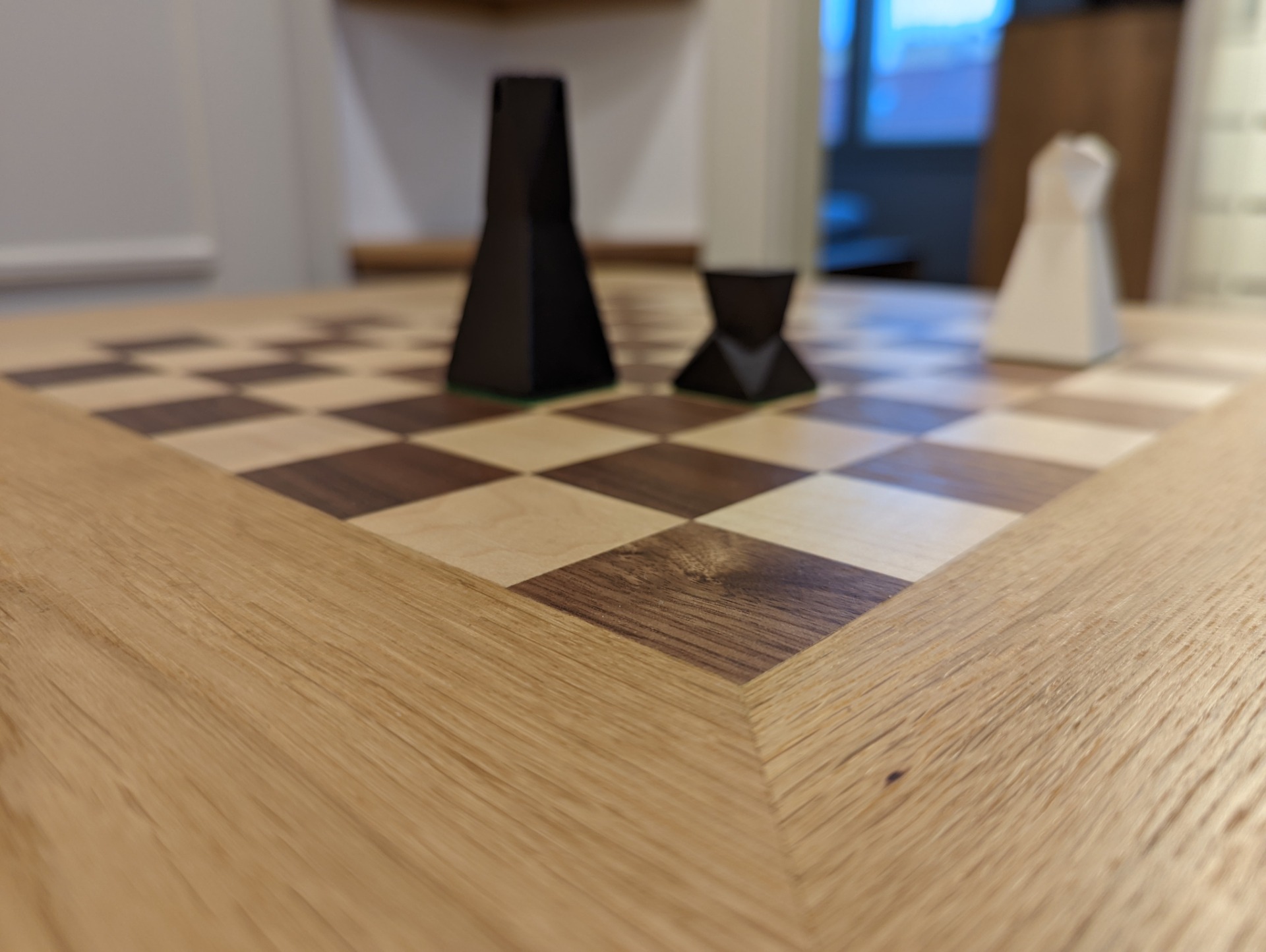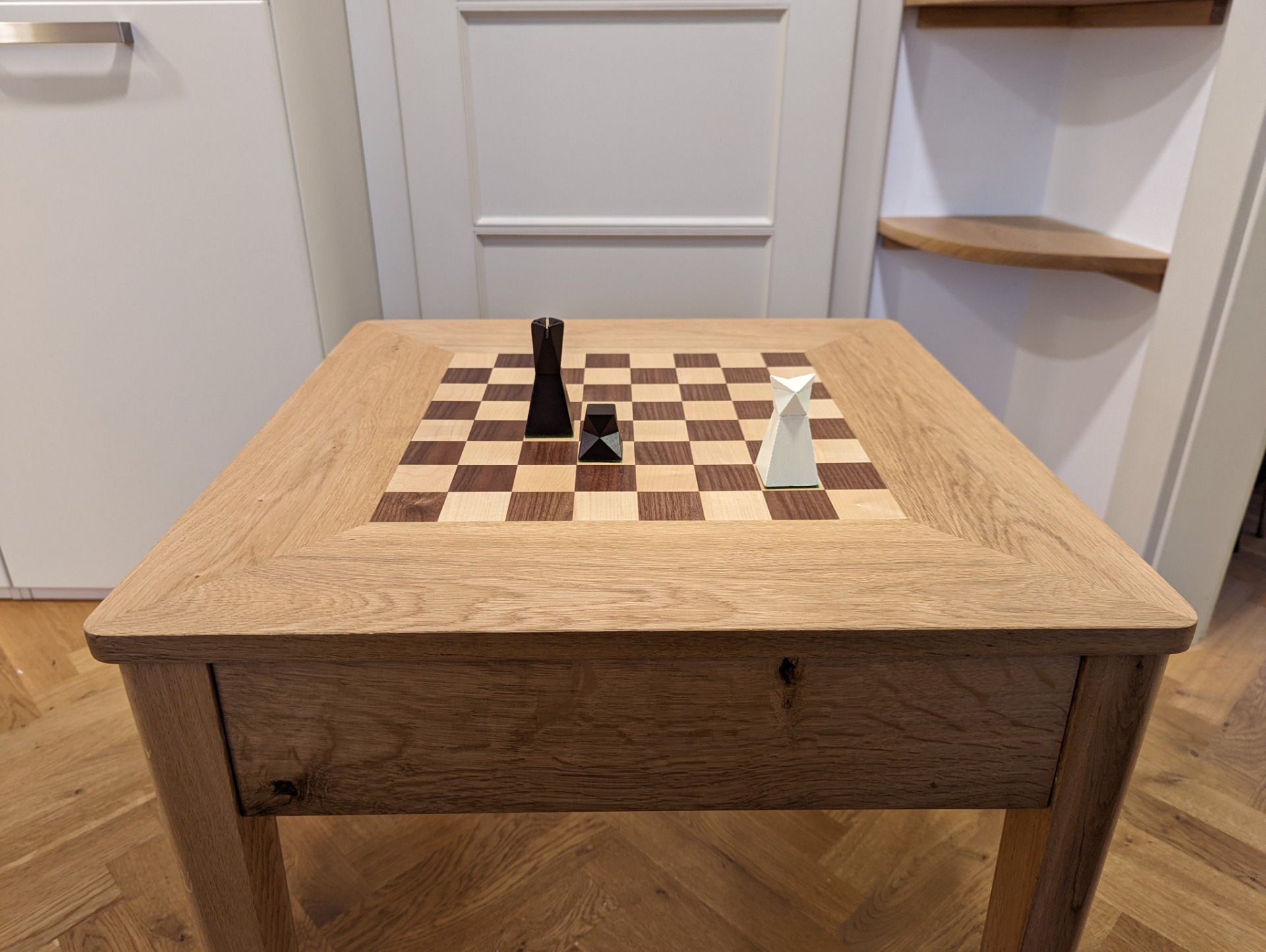 Můžete si stolek prohlédnout i ve 3D modelu v tomto odkaze. Najdete ho tam ve dvou provedeních. V jedné kubistické verzi šachového stolku a v jedné verzi se zaoblenými rohy. Tu vidíte i na fotkách